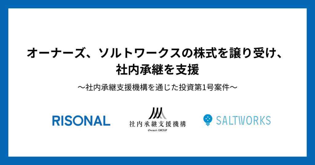 ソルトワークスの株式を譲り受け、社内承継を支援〜社内承継支援機構を通じた投資第1号案件〜