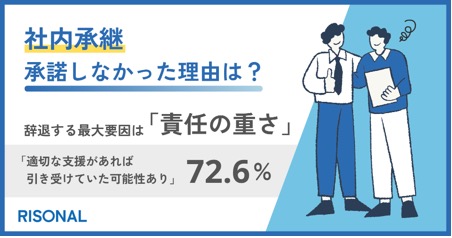 社内承継を辞退する最大要因は“責任の重さ”。72.6%が、支援があれば継いでいた可能性を示唆 〜求められる支援TOP3は「資金調達支援」「承継プロセスの情報提供」「メンター制度」〜